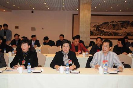 虞總(前排右一)等省人大代表正在認(rèn)真聽取浙江省省長呂祖善代表省政府所做的政府工作報(bào)告