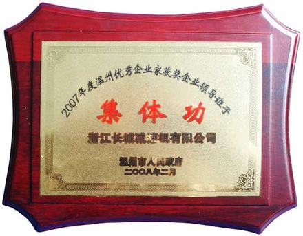 “2007年度溫州優(yōu)秀企業(yè)家獲獎企業(yè)領(lǐng)導(dǎo)班子集體功” 榮譽牌匾