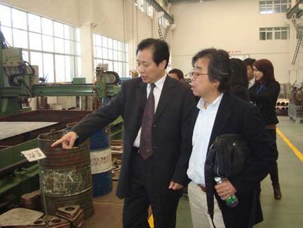虞培清董事長陪同高橋幸司教授等與會人員參觀公司生產(chǎn)車間