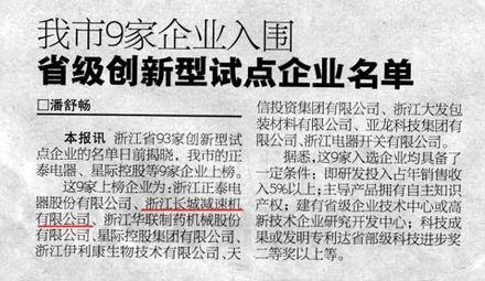 2008年12月8日《溫州晚報(bào)》第4版題為“我市9家企業(yè)入圍省級(jí)創(chuàng)新型試點(diǎn)企業(yè)名單”對(duì)此做了報(bào)道。