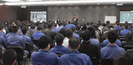 公司全體員工在歡迎會(huì)現(xiàn)場(chǎng)聆聽(tīng)程家信同志講話
