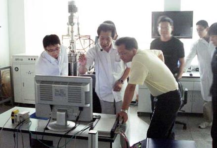 參觀實(shí)驗(yàn)室:虞董向王區(qū)長講解PIV實(shí)驗(yàn)原理
