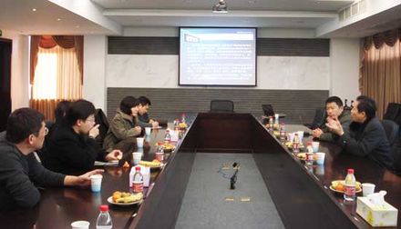圖為來(lái)訪領(lǐng)導(dǎo)聽(tīng)取虞董介紹我公司情況