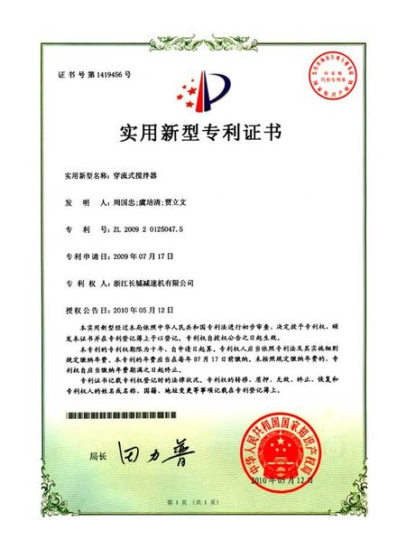 ZL 2009 2 0125047.5  穿流式攪拌器