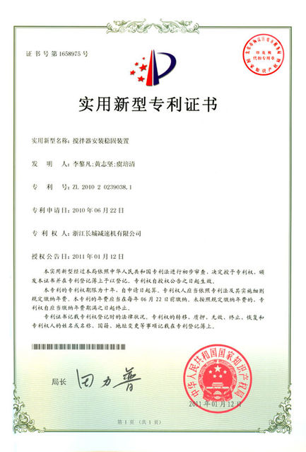 "攪拌器安裝穩(wěn)固裝置"獲實(shí)用新型專利