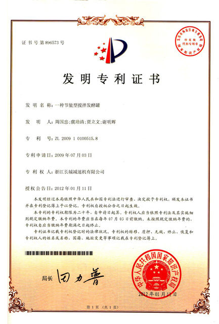ZL 2009 1 0100515.8       一種節(jié)能型攪拌發(fā)酵罐