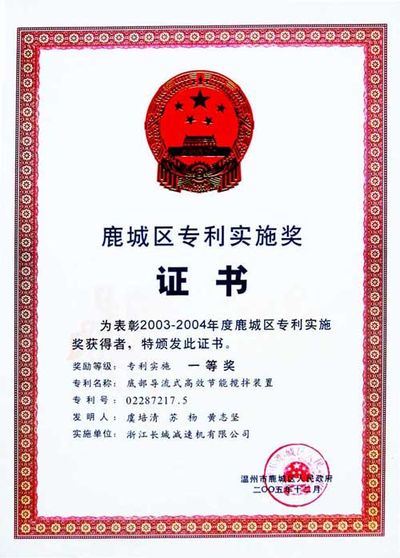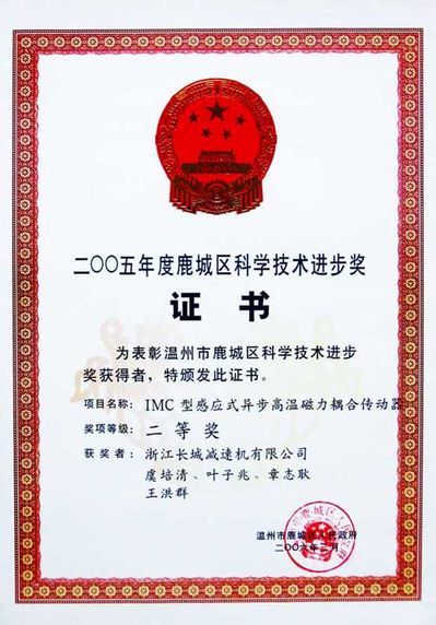 06年6月6日下午,公司代表劉潔等人參加了“鹿城區(qū)自主創(chuàng)新大會”,在大會上,公司獲得三項(xiàng)榮譽(yù),分別為:“溫州市鹿城區(qū)企業(yè)技術(shù)研究開發(fā)中心”、“‘底部導(dǎo)流式高效節(jié)能攪拌裝置’專利實(shí)施一等獎”,“‘IMC型感應(yīng)式異步高溫磁力耦合傳動器’科技進(jìn)步二等獎”。
