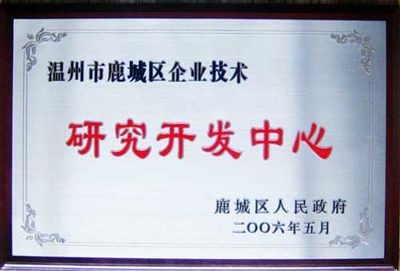 “溫州市鹿城區(qū)企業(yè)技術(shù)研究開發(fā)中心”牌匾