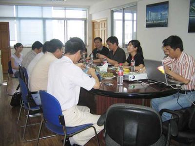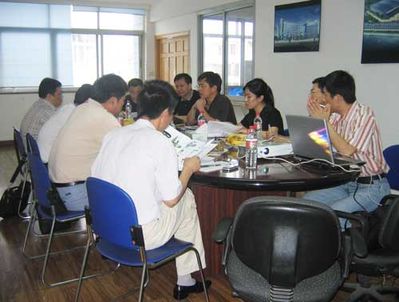 總經(jīng)理助理兼項目部經(jīng)理劉潔(右三)正在主持考察會議