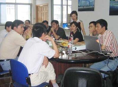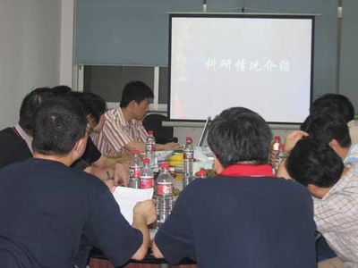 研究所所長周國忠博士正在介紹企業(yè)現(xiàn)有的科研技術(shù)情況