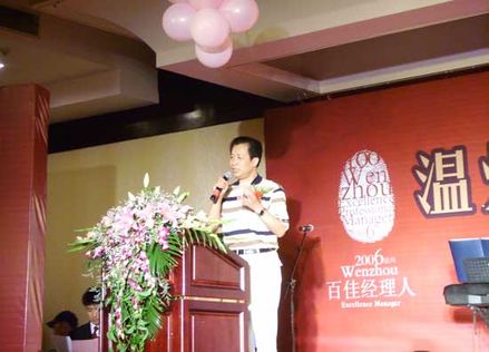 虞培清總經(jīng)理作為“溫州市十大功勛職業(yè)經(jīng)理人”代表上臺演講