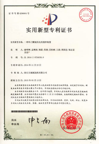 祝賀我司“一種環(huán)己酮氨肟化的攪拌裝置”獲國家實用新型專利