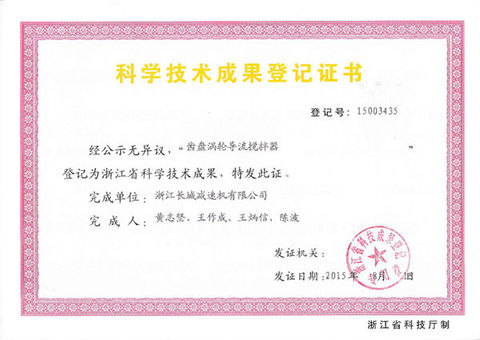 熱烈祝賀我司“齒盤(pán)渦導(dǎo)流攪拌器”登記為浙江省科學(xué)技術(shù)成果