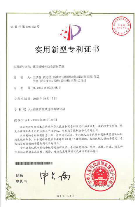 熱烈祝賀我司“釜用機(jī)械傳動(dòng)全密封裝置”獲國(guó)家實(shí)用新型專(zhuān)利