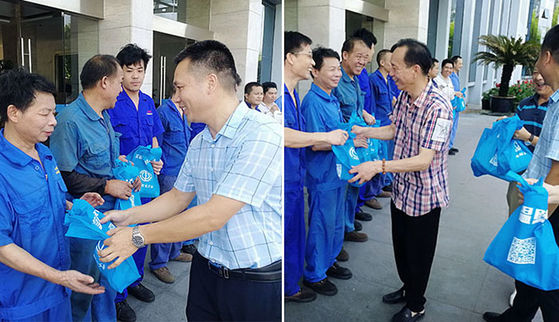 8月16日上午10時,鹿城區(qū)工會副主席方克鵬、輕工園區(qū)工會副主席徐增田帶隊來到我司,對一線員工進行慰問,并囑咐他們高溫天氣的注意休息。我司總經(jīng)理虞淑瑤博士、工會主席夏建敏同志等也非常重視員工去暑工作,詳細講解了公司去暑方法,得到工會領(lǐng)導的高度認可,同時也感謝區(qū)工會給我們送來的慰問與關(guān)懷。