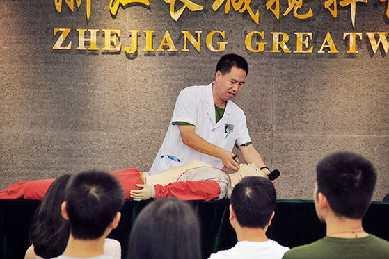為提高員工的安全意識,增強大家的緊急救護知識,2017年9月2日公司邀請溫州市東華醫(yī)院趙金庫醫(yī)師來我司舉辦急救知識培訓(xùn)。培訓(xùn)工作得到公司總經(jīng)理虞淑瑤博士的大力支持,在生產(chǎn)經(jīng)營非常緊張的情況下,仍然抽調(diào)了部分管理人員和車間員工參加了本次培訓(xùn)。