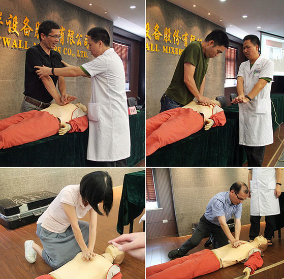 課后總經(jīng)理虞博士帶頭在趙醫(yī)生的指導(dǎo)下,親自實踐心肺復(fù)蘇技能,各管理人員也參與其中,很好的鞏固了課堂學(xué)到的內(nèi)容。培訓(xùn)到的人員都表示,回到崗位后將學(xué)到的知識傳授給未能親自到場參加培訓(xùn)的同仁們。