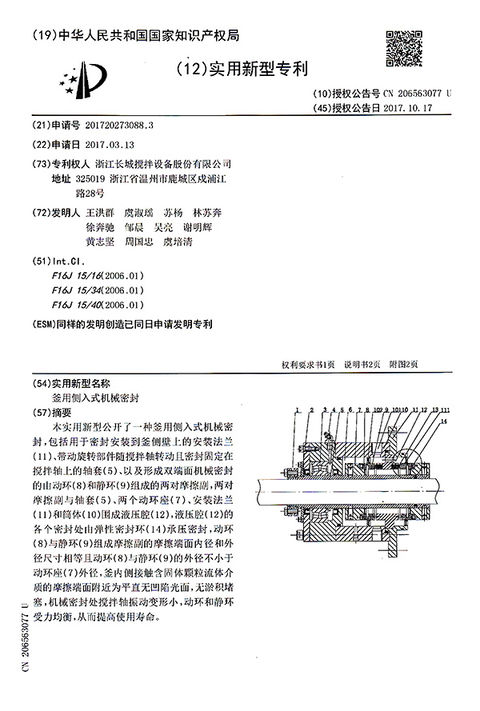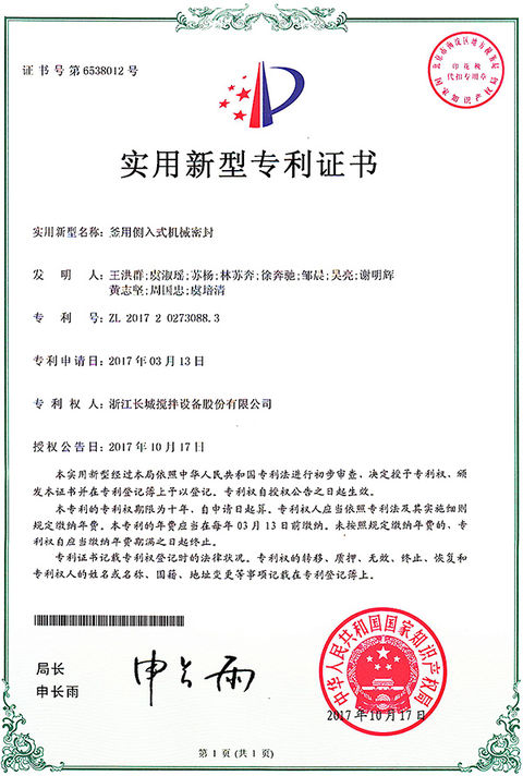 熱烈祝賀我司“釜用側(cè)入式機(jī)械密封”獲國家實(shí)用新型專利