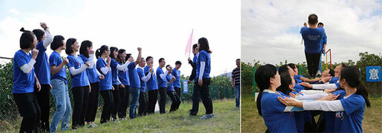 在秋高氣爽的日子里,會(huì)議期間公司組織總部銷售人員與各辦經(jīng)理前往雁蕩山拓展基地活動(dòng),項(xiàng)目有信任背摔,穿越電網(wǎng),畢業(yè)墻。