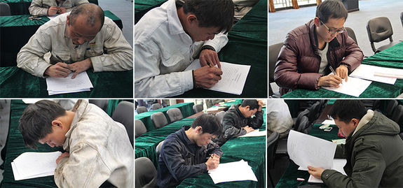 通過理論培訓(xùn)、現(xiàn)場互動,各位焊工師傅對于焊接操作的基本理論概念、操作規(guī)程以及如何規(guī)避焊接操作中的缺陷進(jìn)行了系統(tǒng)化的學(xué)習(xí)并仔細(xì)地做了記錄。緊接著舉行了焊接知識競賽,對各位焊工師傅的培訓(xùn)成果進(jìn)行了驗收。答題中,焊工師傅屏息凝神作答,仔細(xì)謹(jǐn)慎的樣子一如平時的焊接操作。