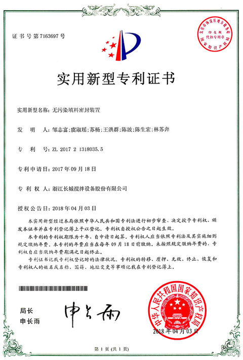 熱烈祝賀我司“無污染填料密封裝置”獲國家實用新型專利