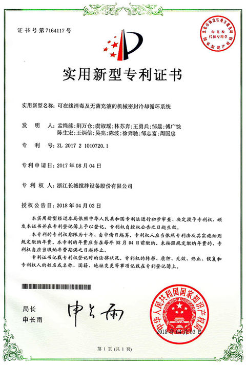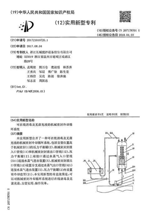 熱烈祝賀我司“可在線消毒及無(wú)菌充液的機(jī)械密封冷卻循環(huán)系統(tǒng)”獲國(guó)家實(shí)用新型專利