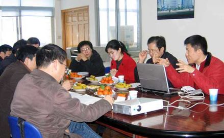 副總劉潔正在介紹06年企業(yè)技術(shù)創(chuàng)新情況