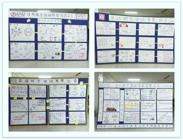 第二日:四個“公司”進行了新一輪的PK,每個公司的版面邏輯、目視化、標(biāo)準(zhǔn)化相較于首次設(shè)計有很大的提升,并且輸出了十個改善點。每個團隊也達到全員參與和匯報。尤其是綠城隊,團隊協(xié)作能力強,積極參與程度高,版面內(nèi)容豐富、充實。時間把控也得當(dāng)。獲得了第一名的佳績。