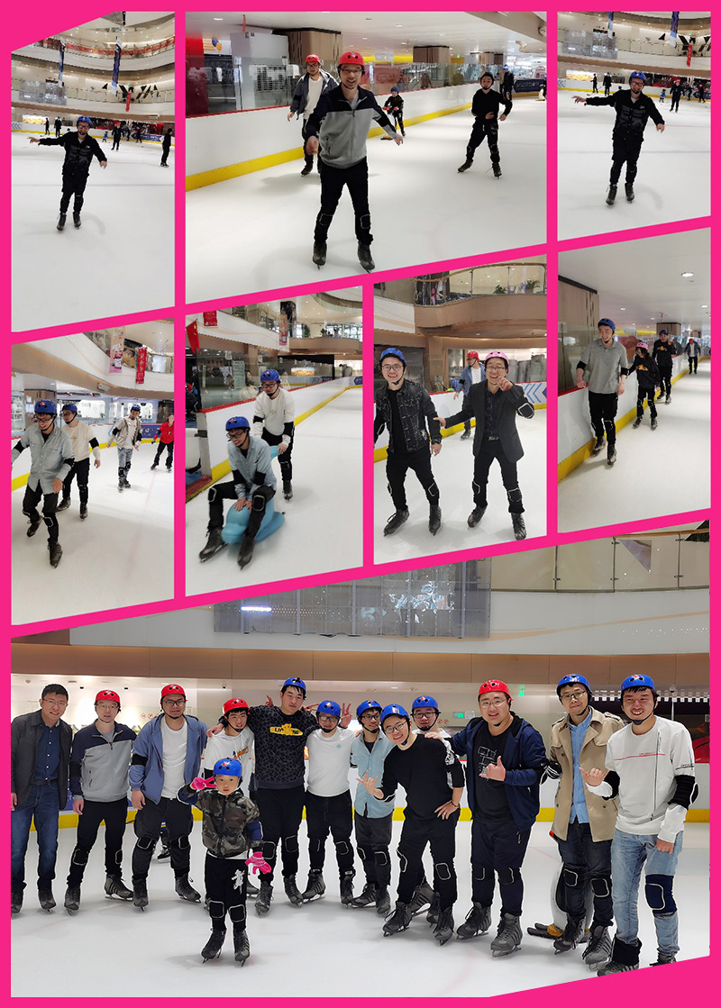 最后登場(chǎng)的是技術(shù)部,這次團(tuán)建旅游,他們選擇了勞逸結(jié)合的項(xiàng)目,上午先去了市區(qū)的滑冰場(chǎng),穿上冰刀鞋,做好防護(hù)措施,在遙遠(yuǎn)的南方提前感受冰雪的快樂(lè),歡聲笑語(yǔ)一片。相互攙扶,掌握平衡,歪歪倒倒,亦步亦趨,倒是與平時(shí)嚴(yán)肅認(rèn)真的樣子大相徑庭。