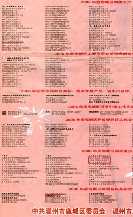 2007年3月7日上午,鹿城區(qū)經(jīng)濟(jì)工作會議隆重召開,虞培清總經(jīng)理代表公司參加此次頒獎大會。并接受以下多項(xiàng)企業(yè)榮譽(yù)“2006年度區(qū)納稅大戶”、“2006年度區(qū)工業(yè)產(chǎn)品銷售收入50強(qiáng)企業(yè)”、“《攪拌器》2006年度鹿城區(qū)科技進(jìn)步二等獎”等。