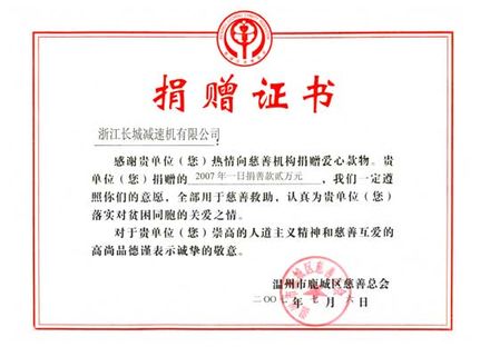 日前,公司在2007年鹿城區(qū)一日捐活動(dòng)中,向貧困同胞捐款兩萬元,獲溫州市鹿城區(qū)慈善總會(huì)頒發(fā)的“愛心捐贈(zèng)證書”。近年來,公司頻頻向社會(huì)捐資捐物,體現(xiàn)了企業(yè)回報(bào)社會(huì)以及對(duì)貧困大眾的關(guān)愛之情。