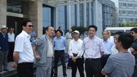 來訪區(qū)僑聯(lián)領(lǐng)導(dǎo)及僑胞于行政大樓前合影 虞培清董事長陪同來訪區(qū)僑聯(lián)領(lǐng)導(dǎo)及僑胞參觀公司立體倉庫 虞培清董事長向來訪區(qū)僑聯(lián)領(lǐng)導(dǎo)及僑胞介紹公司裝配車間主任程家信受賈慶林接見照片合影