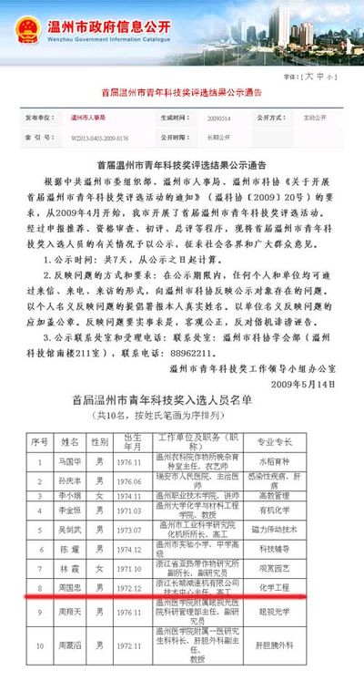日前,由溫州市委組織部、溫州市人事局、溫州市科協(xié)舉辦的首屆溫州市青年科技獎評選結(jié)果公示,我公司技術(shù)中心主任周國忠博士獲此殊榮。 溫州市人事局門戶網(wǎng)站公示 溫州市青...