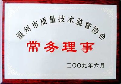 溫州市質(zhì)量技術(shù)監(jiān)督協(xié)會常務(wù)理事牌匾
