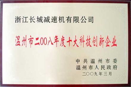 我公司獲得溫州市2008年度十大科技創(chuàng)新企業(yè)榮譽