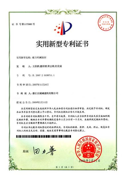 日前,由我公司自主研發(fā)的“磁力機械油封”正式獲得實用新型專利授權(quán)。此實用新型產(chǎn)品的有益之處在于密封性能好,對軸或軸套沒有磨損,適用于高速或低速,臥式或立式,并且結(jié)構(gòu)簡單價...