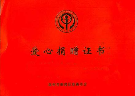 公司獲“愛(ài)心捐贈(zèng)證書(shū)”