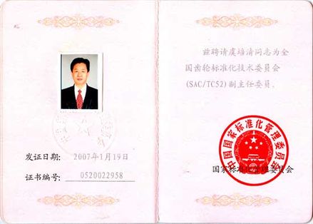 2007年1月,國(guó)家標(biāo)準(zhǔn)化管理委員會(huì)正式頒發(fā)聘書(shū),聘任虞培清總經(jīng)理為全國(guó)齒輪標(biāo)準(zhǔn)化技術(shù)委員會(huì)副主任委員。這一殊榮體現(xiàn)了虞總在齒輪行業(yè)標(biāo)準(zhǔn)化工作中作出的孜孜努力。 全國(guó)...