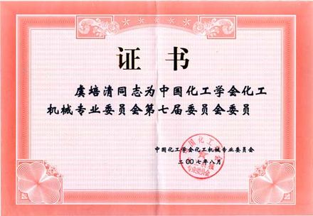 虞總成為中國(guó)化工學(xué)會(huì)化工機(jī)械專(zhuān)業(yè)委員會(huì)第七屆委員會(huì)委員