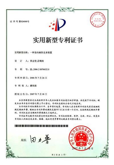 日前,國(guó)家知識(shí)產(chǎn)權(quán)局經(jīng)兩年多的深入論證,正式向我公司頒發(fā)了用作氣-液、液-液分散或氣-液、液-液攪拌的產(chǎn)品——“一種分散型攪拌器”發(fā)明專(zhuān)利證書(shū)。這一重大發(fā)明專(zhuān)利是由公司虞培清總經(jīng)理與...