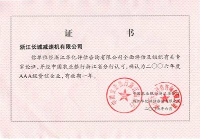 “2006年度AAA級(jí)資信企業(yè)”等級(jí)證書(shū)