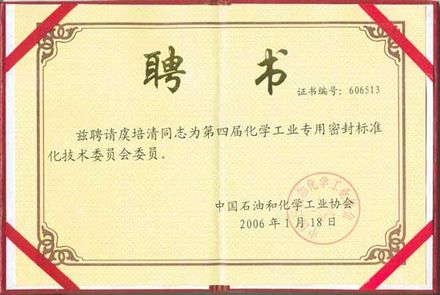 虞總被聘為“第四屆化學(xué)工業(yè)專用密封標(biāo)準(zhǔn)化技術(shù)委員會(huì)委員”