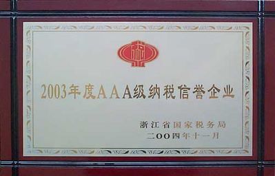 我公司被評(píng)為“2003年度國(guó)稅AAA納稅信譽(yù)企業(yè)”