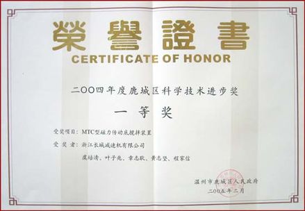 根據(jù)《溫州市鹿城區(qū)科學(xué)技術(shù)進(jìn)步獎(jiǎng)勵(lì)辦法》的有關(guān)規(guī)定,經(jīng)區(qū)科技進(jìn)步獎(jiǎng)行業(yè)組專家和區(qū)科技進(jìn)步獎(jiǎng)評(píng)審組評(píng)議,區(qū)政府審定,由浙江長(zhǎng)城減速機(jī)有限公司虞總、葉工、章工、黃工和裝配車...