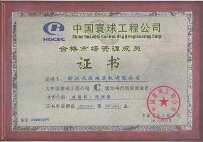2005年6月3日,虞總應(yīng)邀出席“第一屆中國(guó)寰球工程公司合格市場(chǎng)資源成員證書頒發(fā)儀式暨工程項(xiàng)目總承包研討會(huì)”,代表公司領(lǐng)取了中國(guó)寰球工程公司頒發(fā)的“合格市場(chǎng)資源成員證書”。長(zhǎng)城減速機(jī)以其可靠的產(chǎn)品...