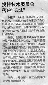 2007年11月27日《溫州日報》第6版訊 (記者:吳勇/朱珊超)       記者日前獲悉,全國攪拌技術專家委員會已經正...