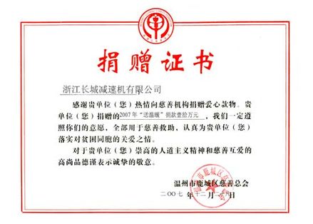 日前,在2007年“送溫暖”慈善捐款活動中,我公司虞培清總經理代表公司向慈善機構捐贈“愛心款”拾萬元,以此表達對社會上貧困人群的一點關愛之情。溫州市鹿城區(qū)慈善總會為此頒發(fā)了“愛心...